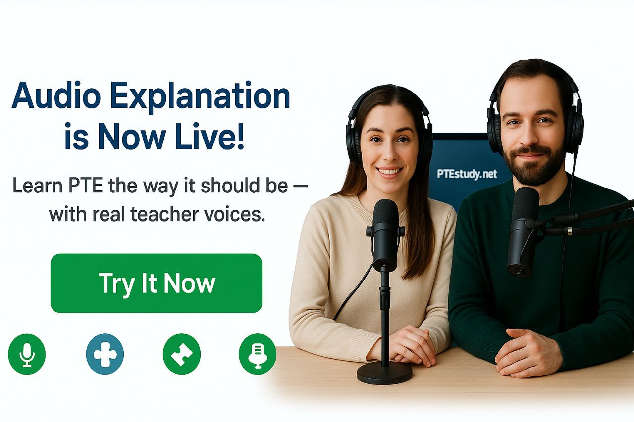 Audio Explanation is a powerful new tool that provides detailed voice-based feedback on your PTE practice tasks. It is embedded into our Immersive Reader system and available exclusively for VIP members.